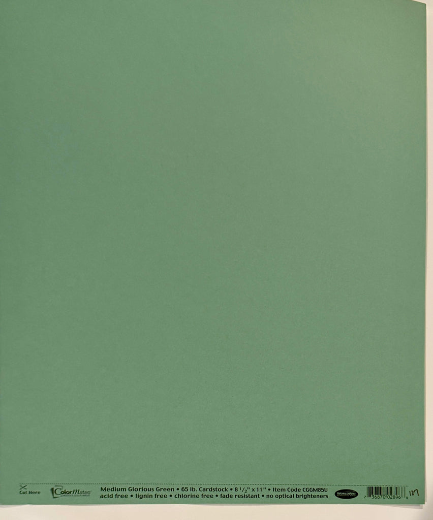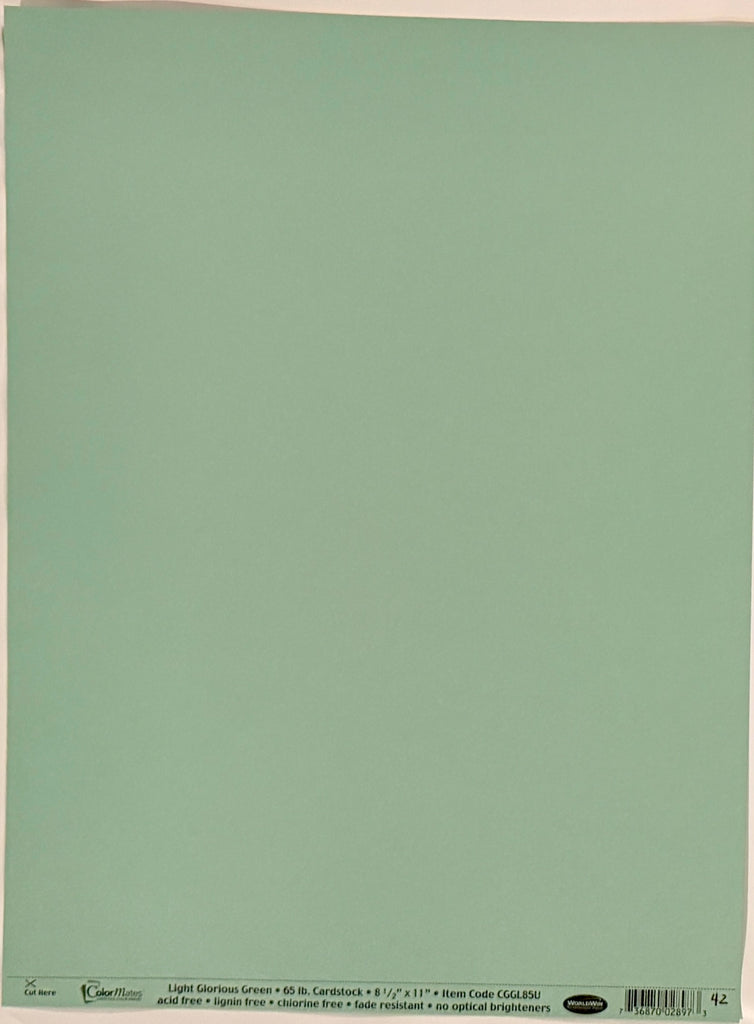 ColorMates Cardstock, Smooth, 65 lb., 1 sheet, Glorious Green. Choose between deep, dark, medium or light tones. 1 Sheet. Acid and Lignin Free.