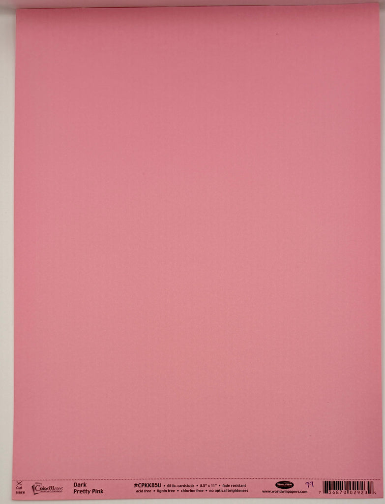 ColorMates Smooth Cardstock, 65lb, fade resistant, acid & lignin free. 1 Sheet. Pretty Pink in light, medium, dark or deep tones.