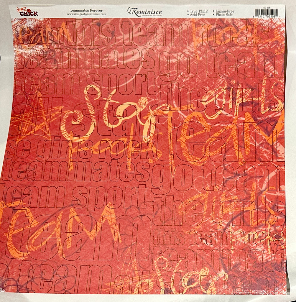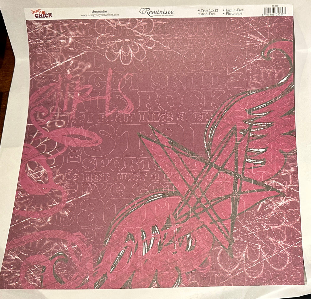 Reminisce Sports Chick Collection double-sided designer paper, true 12x12, Acid free, Lignin free, photo safe, 1 sheet