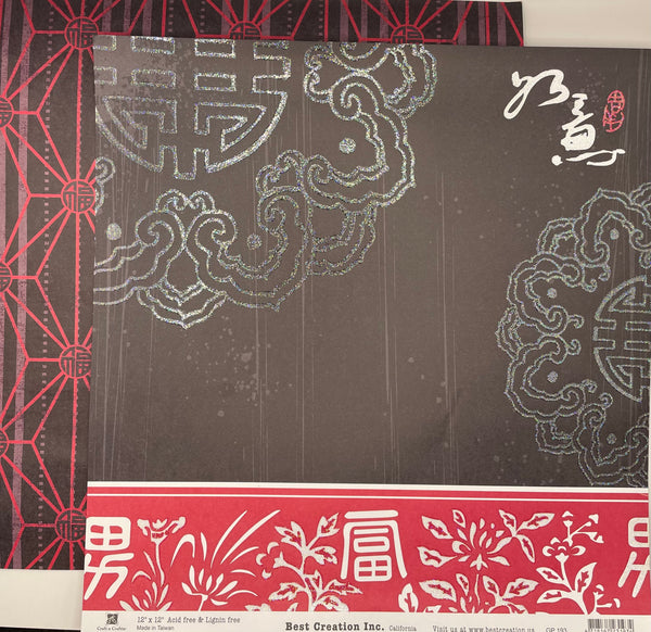 Best Creation Inc., Craft n Craftin', Chinese Glitter Paper Collection, 12x12 pattern papers, double sided.
