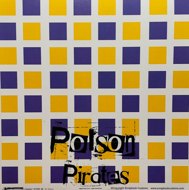 Polson Pirates in purple and yellow squares.