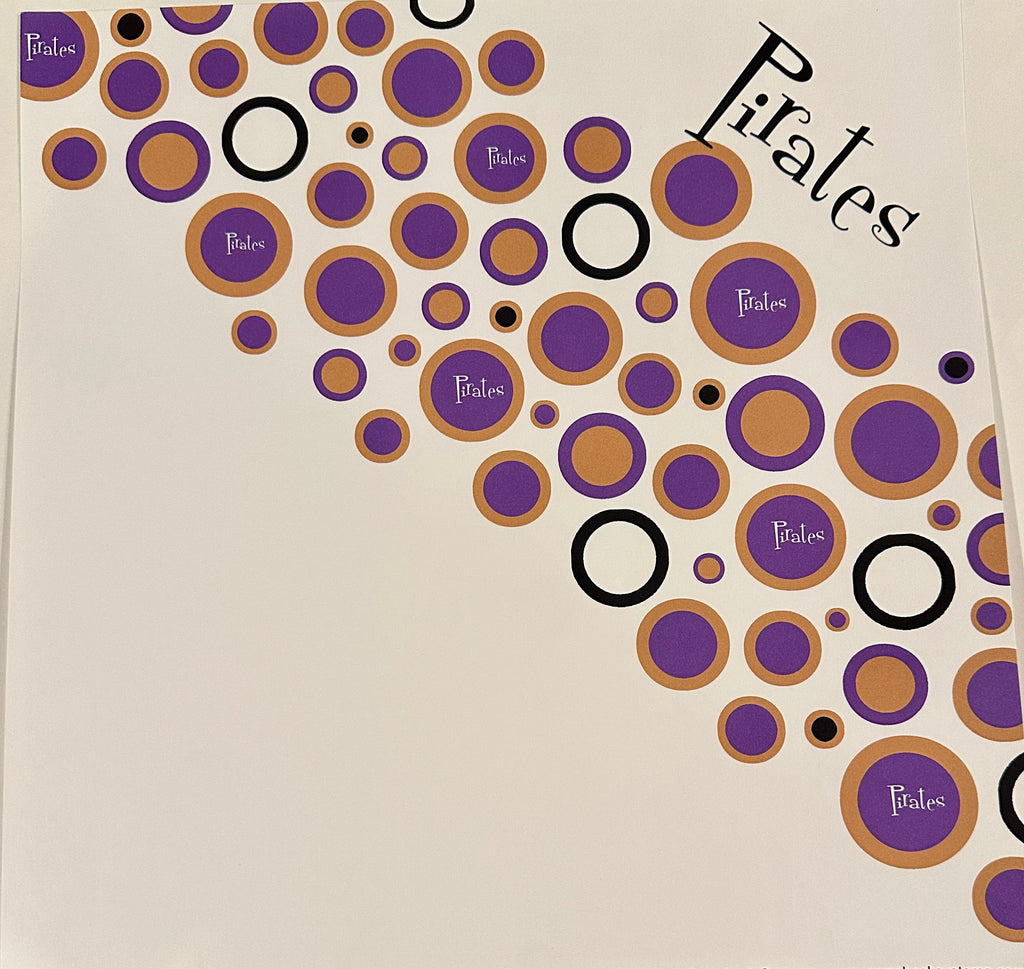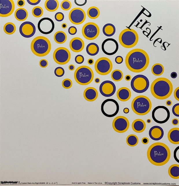 Custom Retro Arc Right Paper - Retro Arc Right Pirates, Polson High School, PHS 12x12 single-sided pattern paper. 1) Sheet. Acid and Lignin Free. Made in USA.