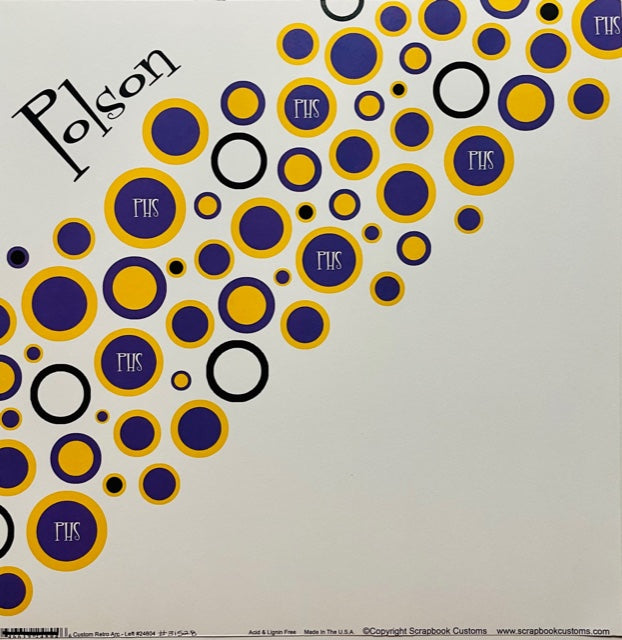 Custom Retro Arc Left Paper - Retro Arc Left Polson High School, PHS, Home of the Pirates, 1) Sheet of 12x12 single-sided pattern paper. Acid and Lignin Free. Made in USA.