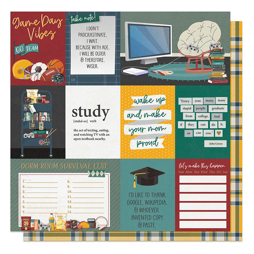 Photo Play Campus Life is perfect for every mom or dad who has a kid in college. With honest humor and a terrific neutral color palette, Campus Life will capture college memories in style! 1 Sheet of 12x12 double sided pattern paper. Acid and Lignin Free. Printed in USA.