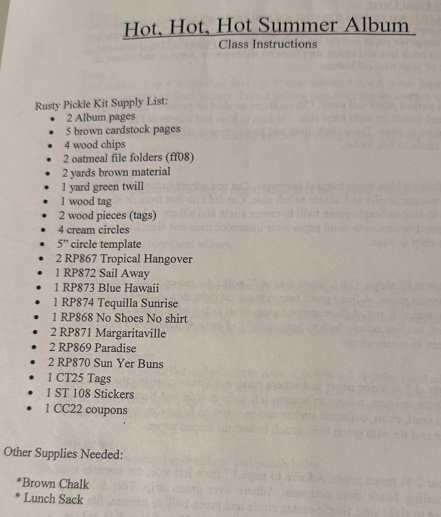 Rusty Pickle Panama Jack Collection, Hot Hot Hot Summer Chipboard Album Class Kit with full instruction. Make the album or use the unique one-of-a-kind products to create your own scrapbook pages. Comes in a gorgeous chocolate brown, lime green, neon yellow, beige and black. All products are Acid and Lignin Free. Made in the USA. One kit.
