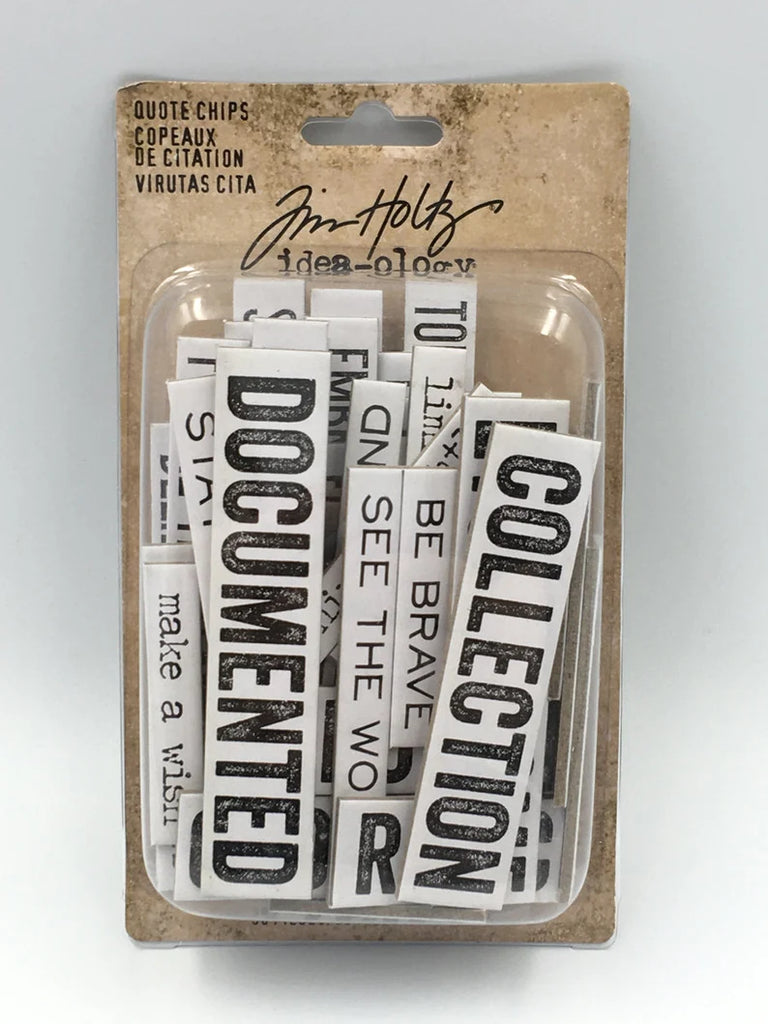 Quote Chips - a small chipboard element displaying a word or phrase. Includes 58 pieces.