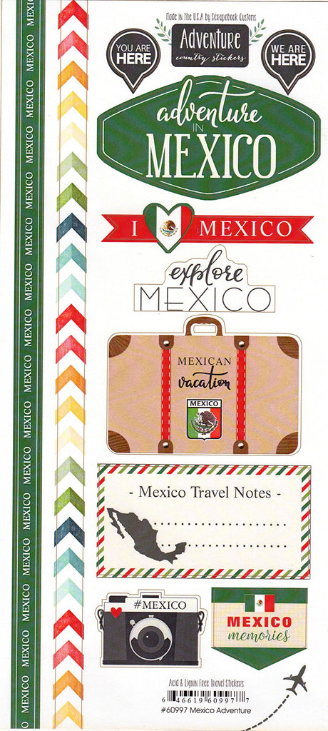 Scrapbook Customs Travel Adventure Country Stickers, 1 Sheet of 5.5" x 12" Travel Stickers. Acid and Lignin Free.