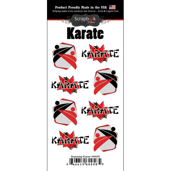 Scrapbook Customs Go Big Sports Collection Repeating Sticker Sheet, 3"x5" with specific sports designs.