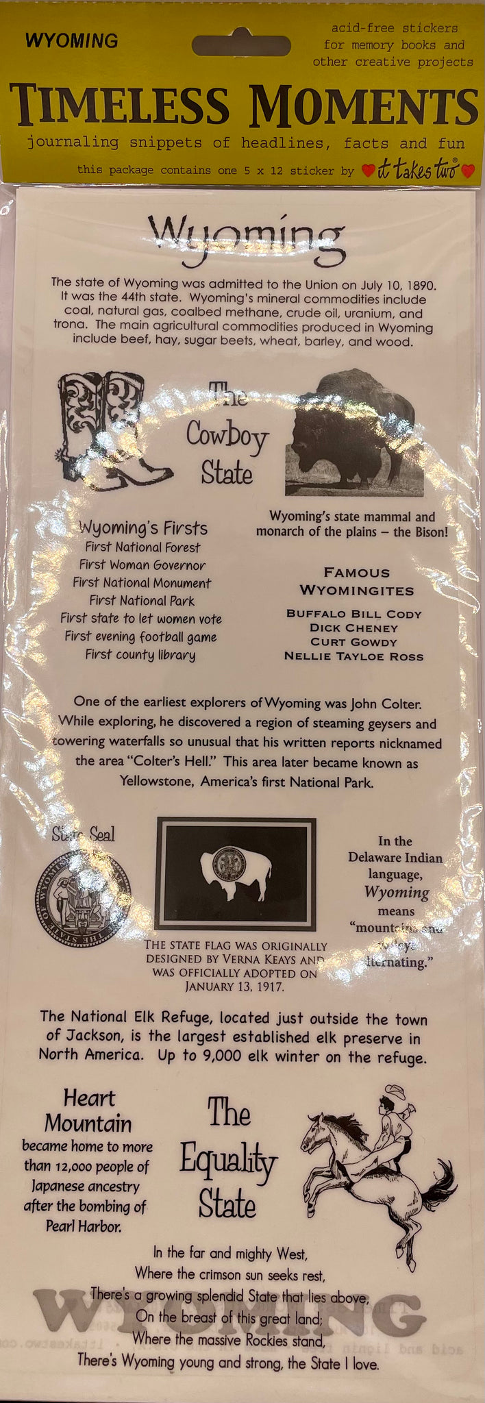 It Takes Two, Timeless Moments Collection, Wyoming Facts Stickers, 5" x 12" sheet.